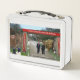 This is a standard metal lunchbox that appears to work just fine. We designed this box ourselves with an uploaded photo and custom text on the front and back. It looks absolutely beautiful except the front of the lunchbox is not centered like it shows in the photo. The print borders don't align with the inset flat part of the box where the preview photo online showed it perfectly centered in there. The back looks nice and centered though.