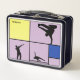 This eye-catching pillow showcases the iconic geometric shapes and bold primary colors of the Dutch painter Piet Mondrian's signature style, fused with the energy and movement of three hip-hop dancers captured in vibrant violet and yellow, with sleek black accents.