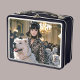 This is a standard metal lunchbox that appears to work just fine. We designed this box ourselves with an uploaded photo and custom text on the front and back. It looks absolutely beautiful except the front of the lunchbox is not centered like it shows in the photo. The print borders don't align with the inset flat part of the box where the preview photo online showed it perfectly centered in there. The back looks nice and centered though.