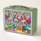This is a standard metal lunchbox that appears to work just fine. We designed this box ourselves with an uploaded photo and custom text on the front and back. It looks absolutely beautiful except the front of the lunchbox is not centered like it shows in the photo. The print borders don't align with the inset flat part of the box where the preview photo online showed it perfectly centered in there. The back looks nice and centered though.