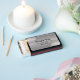 Smoke shop promotional match box, with graphics of a faux metal plate, on the top, and custom text to advertise your business.