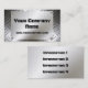 A metal look shiny plate surface in stainless steel grunge look chrome is a bold, unique and masculine look business card. Border of screws add to the 3d design. Background on the front of the card is a diamond metal look pattern. Easily customize with your own information. Use the perfect font style of bold black lettering with screws in the design, or easily change the font style and/or color. The perfect professional looking card especially for industrial, construction and building occupations. Printed on paper, not actual metal. More information can be put on the back as well onto the same metal background. A strong business card that stands out from the rest.