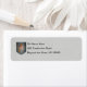 Linda Baysinger Peck's painting of a gold, medieval, rampant, heraldic lion, on faux metal shield with gray faux parchment. Just add your own text, to personalize.