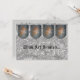 Linda Baysinger Peck's painting of a gold, medieval, rampant, heraldic lion, on faux metal shield, with gray faux stone. Just add your own text on both sides, to personalize.