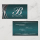 Metal silver grey, dark teal eye-catching monogram business card