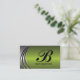 Metal silver grey, green, monogram eye-catching business cards. A modern design, featuring metal silver grey curves with black outline and your monogram/initial on glowing green background. Click on “Customize it” to have a better result and choose color, and place for your initial. Perfect for many industry fields, construction, insurance, financial, engineers and more.