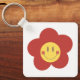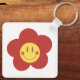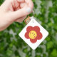 The key chain is made of metal and really sturdy. The flower design is really cheerful. The logo and colors are clear and crisp!