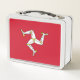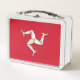 This lunch box prominently features the flag of the Isle of Man, showcasing its distinctive triskelion symbol on a red field. The triskelion, with its three armored legs joined at the thigh, represents the island's motto "Quocunque Jeceris Stabit," which translates to "Whichever way you throw it, it will stand." This symbolizes resilience and determination, reflecting the spirit of the Manx people.