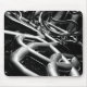 An arrangement of reflective metallic pipes and tubes. A 3d CGI design.