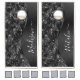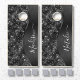 Easily personalize this black brushed metal and glamorous faux glitter patterned cornhole set with your own custom name.