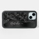 Easily personalize this black brushed metal and glamorous faux glitter patterned phone case with your own custom name.