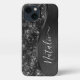 Easily personalize this black brushed metal and glamorous faux glitter patterned phone case with your own custom name.