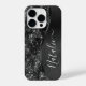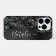 Easily personalize this black brushed metal and glamorous faux glitter patterned phone case with your own custom name.