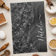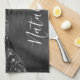 Easily personalize this black brushed metal and glamorous faux glitter patterned kitchen towel with your own custom name.