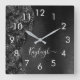 Easily personalize this black brushed metal and glamorous faux glitter patterned wall clock with your own custom name.