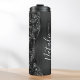 Easily personalize this black brushed metal and glamorous faux glitter patterned thermal tumbler with your own custom name.