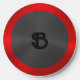Image of a metallic black circle background with a red border. Optional monogram.