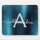 Metallic Blue Business Foil Monogram Name Mouse Pad