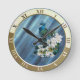 Metallic Blue-green Peacocks on Emerald Green Silk Round Clock