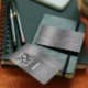 Metallic Brushed Steel Silver Script Qr Code Business Card
