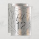 Set the perfect wedding table with these unique cards. The pieces in this modern wedding suite feature elegant hand-written script accents and a sleek metallic silver background overlaid with a delicate geometric pattern in basic black. The bride and groom's initials and wedding date and table numbers can be customised using the provided template. Search ID648 to see all the pieces in this elegant set.