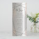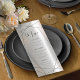 For couples who seek a stylish simplicity, the pieces in this wedding suite feature modern, hand-written script accents and a classic black and white color palette that shimmers and shines with a sleek metallic-look background overlaid with simple geometric lines. The same striking background highlights the back of this wedding menu along with the bride and groom's initials and wedding date. Add your own menu items using the provided template. Search ID523 to see all the pieces in this elegant set.