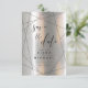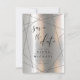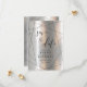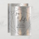 The pieces in this wedding suite, like this exciting 'Save the Date' card, feature modern, hand-written script accents and a sleek metallic silver background overlaid with a delicate geometric pattern in basic black. The bride and groom's initials on the reverse and all the' Save the Date' wording on the front can be customised using the provided template. Search ID648 to see all the pieces in this elegant set.