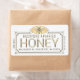 Elegant honey label with elaborate border and heraldic honeybee. Personalize with your beekeeping business name, net weight and apiary location. Honey is written in an 'embossed' gold font. Vintage medieval illustration from UK of a honeybee in a metallic gold oval.