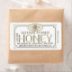 Elegant honey label with elaborate border and heraldic honeybee. Personalize with your beekeeping business name, net weight, apiary location and contact information. Honey is written in an 'embossed' gold font.