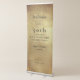 Metallic Gold retractable wedding anniversary banner. Black Text. Glam. Elegant.