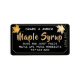 This maple syrup label can be customized with your name or business name, address, contact info such as webpage or cell# and maple syrup volume. There is a handy list of common container sizes with their conversions in the form field where you fill in your information. Black background with gold text and border. For a special touch, the word “maple syrup” has a 3D appearance. Two dainty gold and yellowish-orange leaves are scattered on the black background as though they were falling from a sugar maple in autumn.