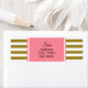 Metallic gold and pink striped pattern return address label. The design features a metallic gold and white striped pattern and a pink rectangle with your custom information.