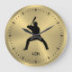Metallic Gold Black Baseball Player Silhouette Large Clock