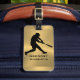 Metallic Gold Black Baseball Player Silhouette Luggage Tag