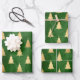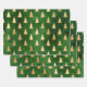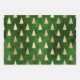 Metallic Gold Christmas Trees on Green Wrapping Paper Sheets