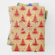 Metallic Gold Christmas Trees Pattern Glitter Wrapping Paper Sheets
