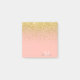 Metallic Gold Glitter Rain + Rose Quartz Monogram Post-it Notes