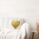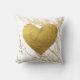 Decorative throw pillow in a faux gold metallic marble background with gold foil heart across the center. Design is repeated on both sides of pillow.