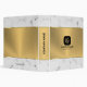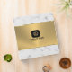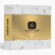 Simple, elegant, and minimalistic design. Combination of metallic gold and gray marble texture image background. Shiny gold stripes as an accent element.