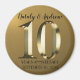 Celebrating 10 years together. Happy 10th wedding anniversary. Golden metallic label.