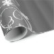 A festive pattern of large white swirls, snowflakes and stars scattered over a metallic grey background, to add an elegant touch to your Christmas gift wrapping these holidays.