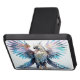 This majestic AI eagle design is done in metallic, iridescent feathers. With a black steel beak, wings and tail opened, this eagle looks striking and dignified.