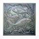 Add a touch of kinetic elegance to your decor with this faux bas-relief tile featuring a detailed school of fish swimming through swirling seaweed and waves. The design mimics a highly detailed metal etching or sculptural plaque, highlighted by a luminous, iridescent finish. The pearlescent effect shifts from cool silver and pale green to soft lavender, perfectly capturing the sophisticated, high-end feel of the collection. This artful piece is ideal for adding texture and luxury to any accent wall or water feature area. Search ID1223 to see other marine elements in this dramatic metallic series. Note: design may contain generative content.