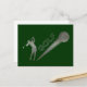 Metallic lady golfer hitting golf ball postcard