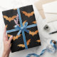 Metallic Orange Bats and Black Halloween Wrapping Paper