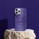 This design features a metallic purple background, a purple swirl, and a customizable monogram.