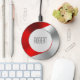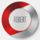 Red and gray faux stainless steel looks geometric design. Optional monogram.