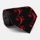 Metallic-looking Red Bass Clef. Also known as F Clef. This tie has a black ground.