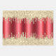 This sparkling gift wrap has a metallic faux foil festive red base, with printed melting glitter drips pouring in from both sides. one sheet of gold glitter, one of platinum silver, and one of crimson red dripping glitter.