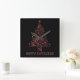 Metallic Red Stars Christmas Tree Elegant Black Square Wall Clock
